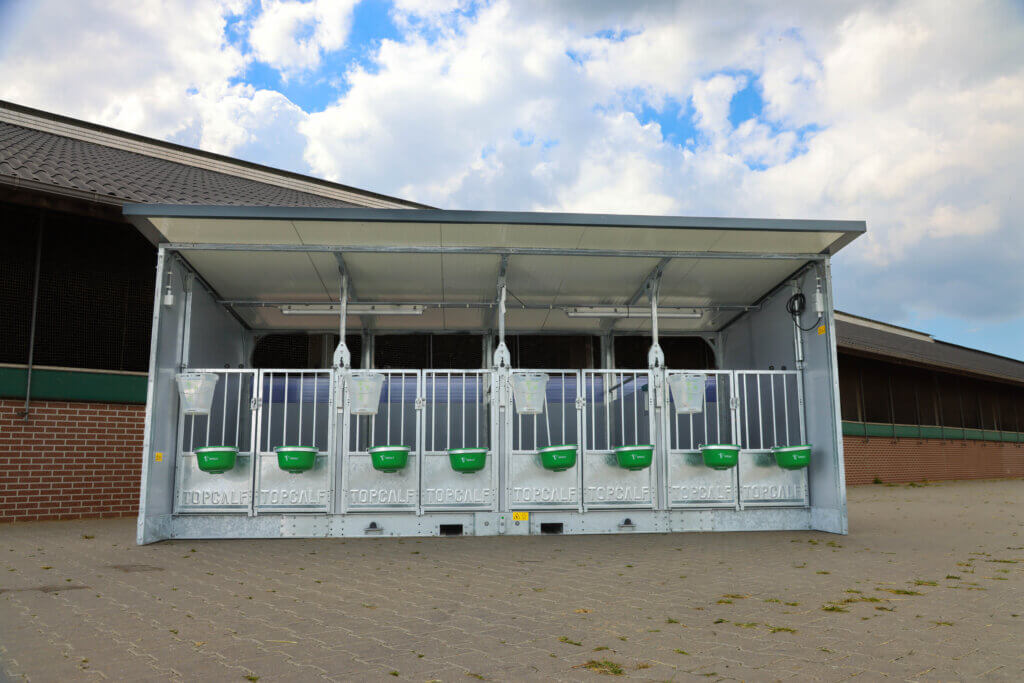 ✓ Komplettkonzept – Inklusive Beleuchtung, Stromanschluss und aller notwendigen Zubehörteile wie Saugeimerhalterungen, Saugeimer und Tränkenäpfe – für eine sorgenfreie Kälberaufzucht.